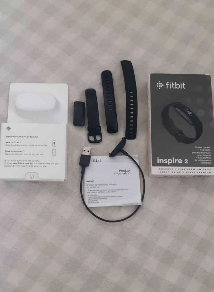 Fitbit Inspire 2 its great for all-day use and comfort and perfect if you're trying to reach your fitness goals. (Barely used) Includes: -Box - Charger Cord - Service Manual -Extra Wristband -Great Condition