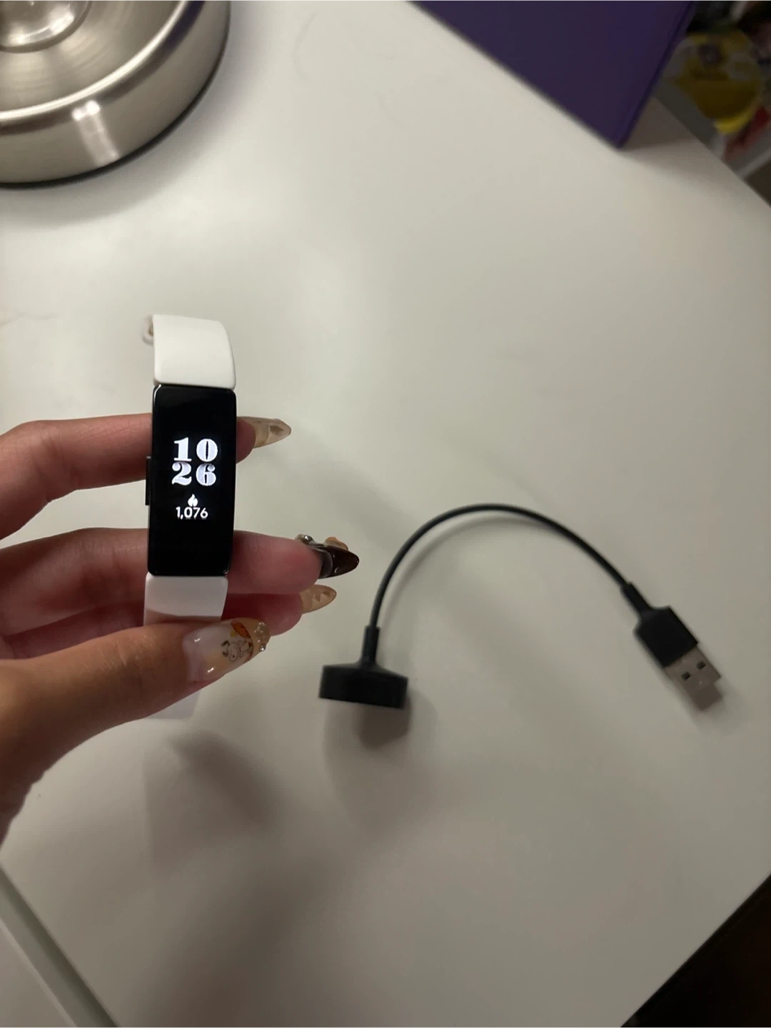 137Selling a white Fitbit Inspire HR! It comes with the charger. - sadly lost the manual pamphlet. It's lightweight and portable, perfect for tracking your fitness goals. Only has the small band on it.