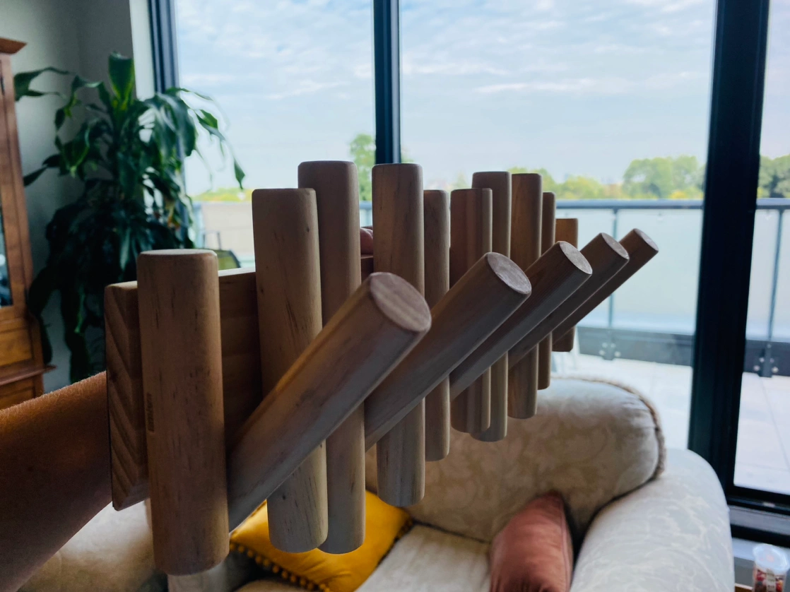 Umbra 5 Hooks, Wall-Mounted Rail/Rack, Doubles as Art, Beveled Pine Wood Dowels, Natural Finish, 14.9 x 6.6 x 1.6 inches. Was $55 brand new (https://a.co/d/4WGBxS0). Still works perfectly, just moved and don’t have use for it anymore.