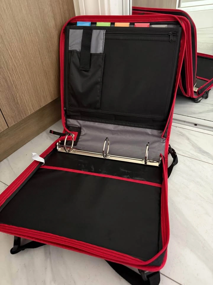 10Honestly never used it because I bought it when I didn’t really need it. I never used it. I originally bought it for 30 dollars from Walmart. It’s great, portable, and has many storage units for pencils, papers, and even notebooks. It has rings for hole punched papers and is very high quality.