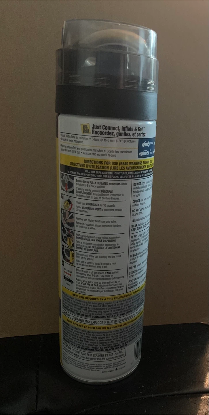 86Fix-A-Flat quickly and safely seals and inflates flat tires in minutes! It works on punctures up to 6 mm (1/4") and does not require a jack or tools