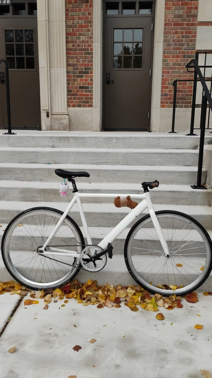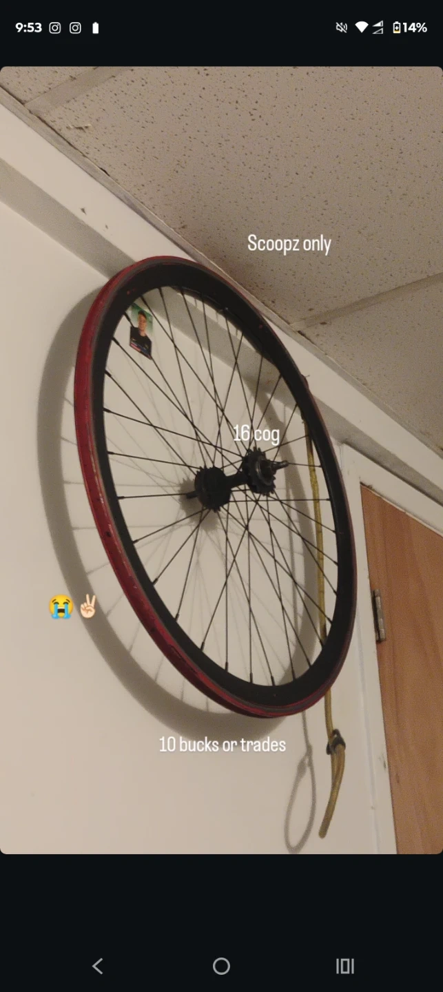 15Got some parts and a you urban track Plushies and silver chain ring not for sale on the urban will add a different one, The wheelset has no air one of them is popped front wheel carbon wind breaker just one of the spokes are loose, Rear rim 16t cog rear 10 bucks for it. Mtb clip pedals