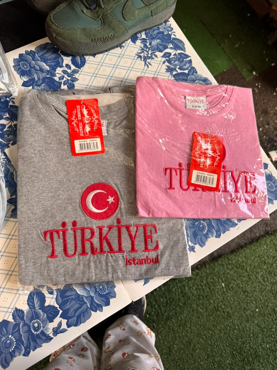 Two graphic t-shirts from Istanbul, Türkiye. One grey t-shirt with "TÜRKIYE Istanbul" graphic and the other is pink with "TÜRKIYE" graphic. The pink shirt is size 9-10 years.