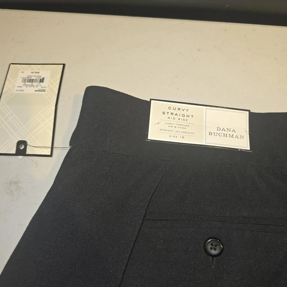 Dana Buchman Curvy Straight Black Tie Dress Pants 16 NWT