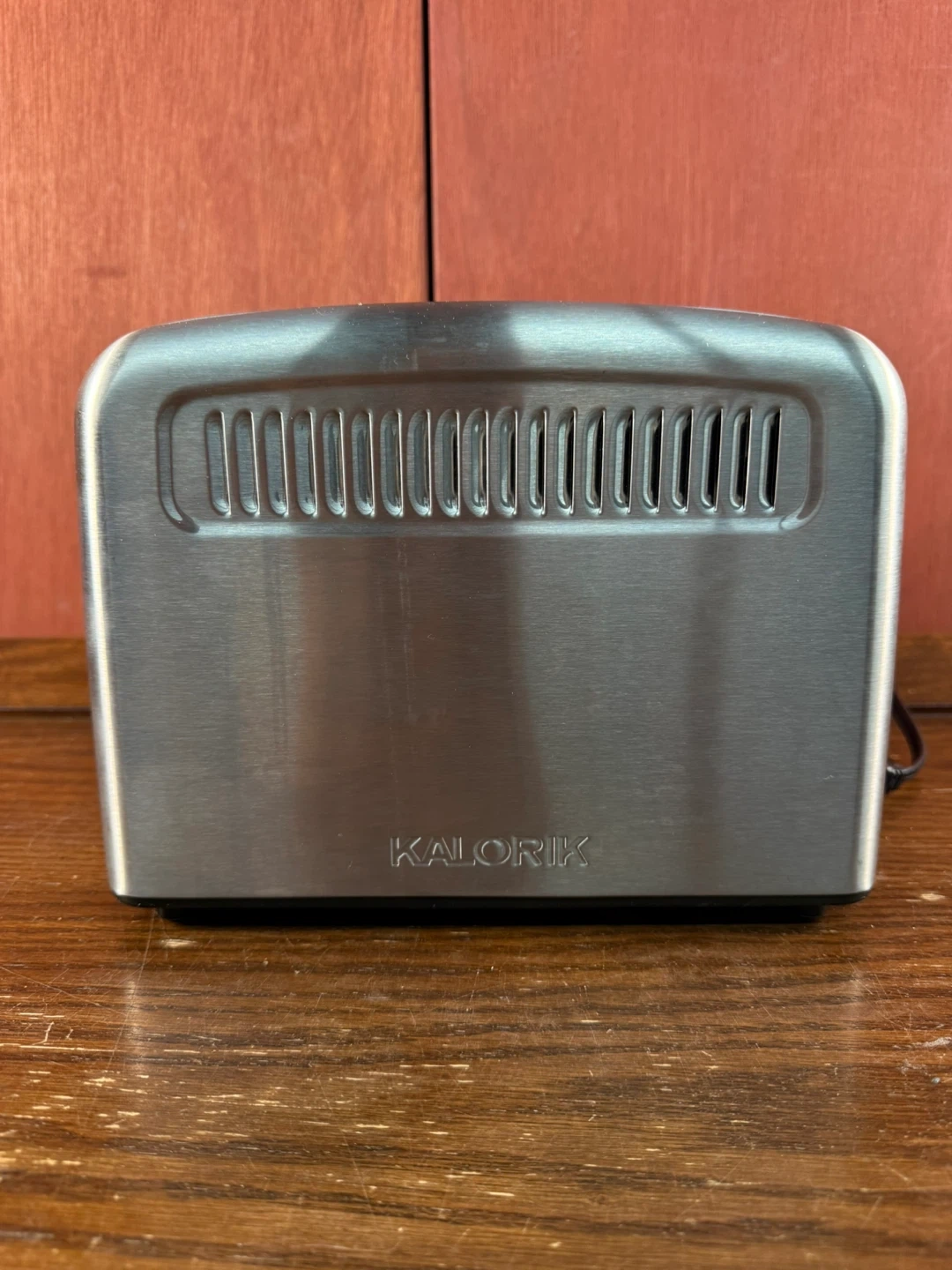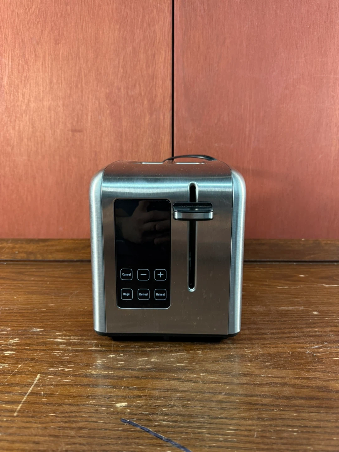 I'm selling a used Kalorik 2-Slice Stainless Steel Toaster, perfect for toasting your favourite breads and bagels with its sleek design and digital interface.