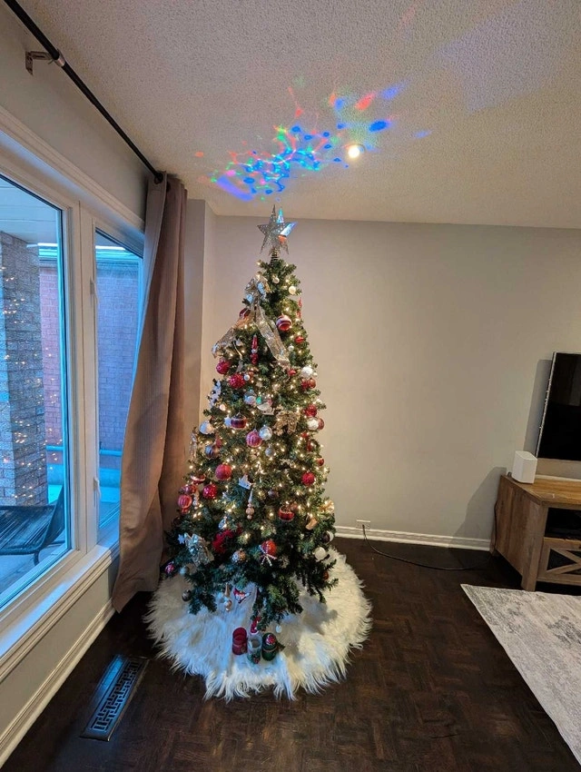 Add some sparkle to your holidays with this beautiful used Christmas tree, standing tall and ready to spread cheer. This tree has been the centerpiece of our holiday celebrations and is in very good condition, ready to bring joy to a new home. It features a sturdy base, easy setup, and a full, lush look with all ornaments included!