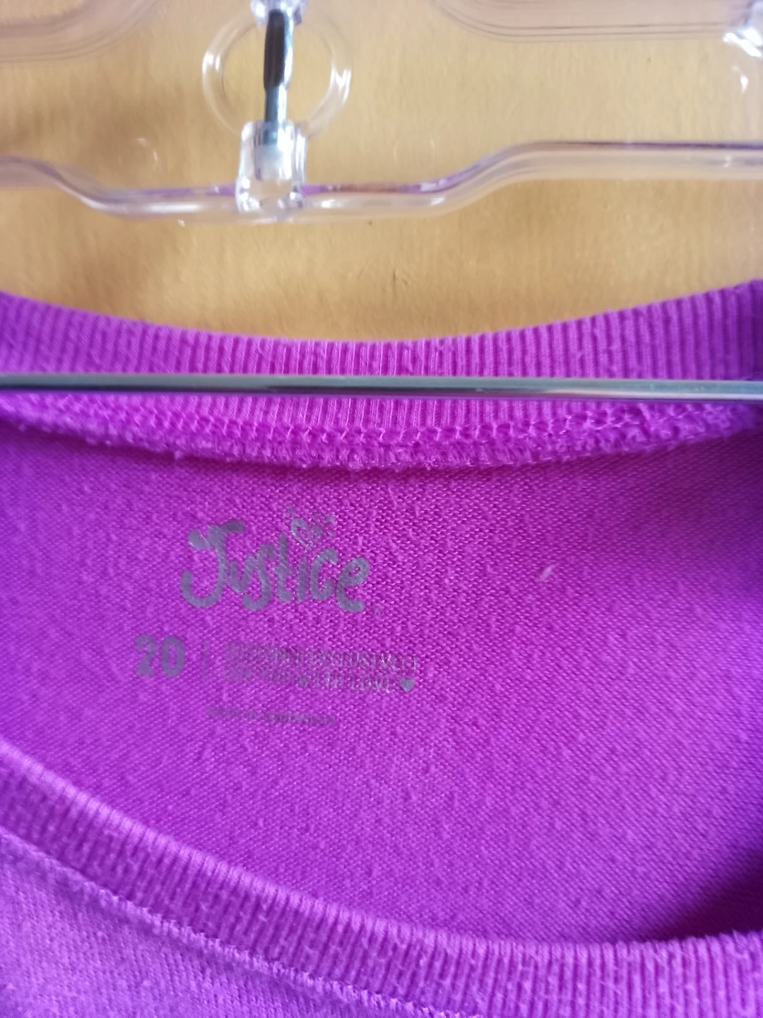 This Justice long-sleeve shirt is a fun purple colour. It has "JUST CHILLIN'" and "JUST SAYIN'" graphics with dog faces and emojis. It's made of a soft fabric and perfect for casual wear.