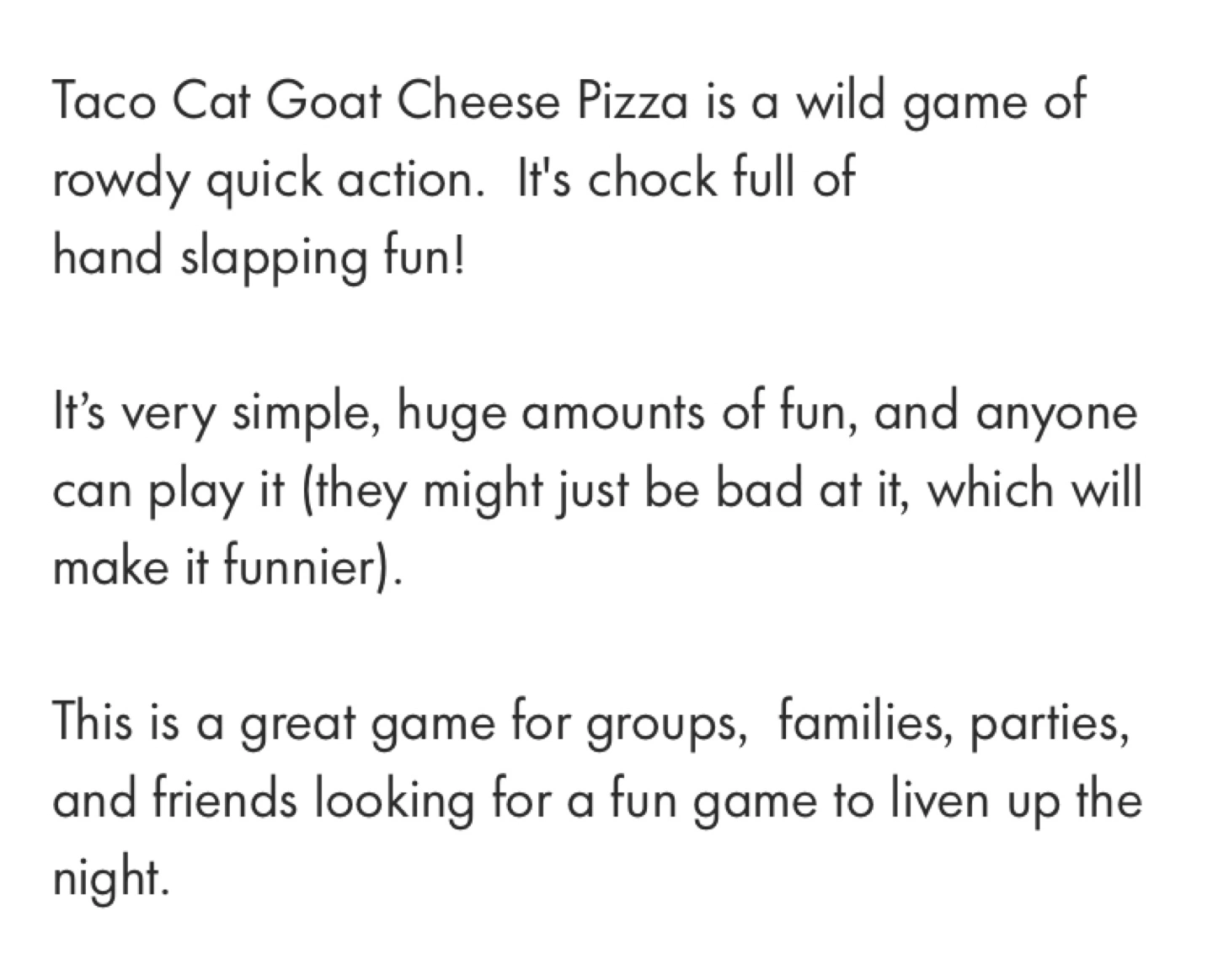 Fun Game! Taco, Cat, Goat, Cheese, Pizza