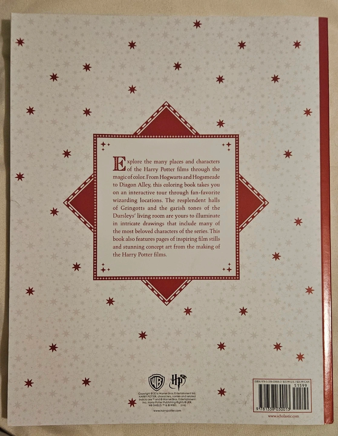 Explore the magical world of Harry Potter with this brand new, never used, coloring book! It features intricate drawings of iconic locations and beloved characters from the films. Get ready to bring Hogwarts, Hogsmeade, and Diagon Alley to life with your own colours!