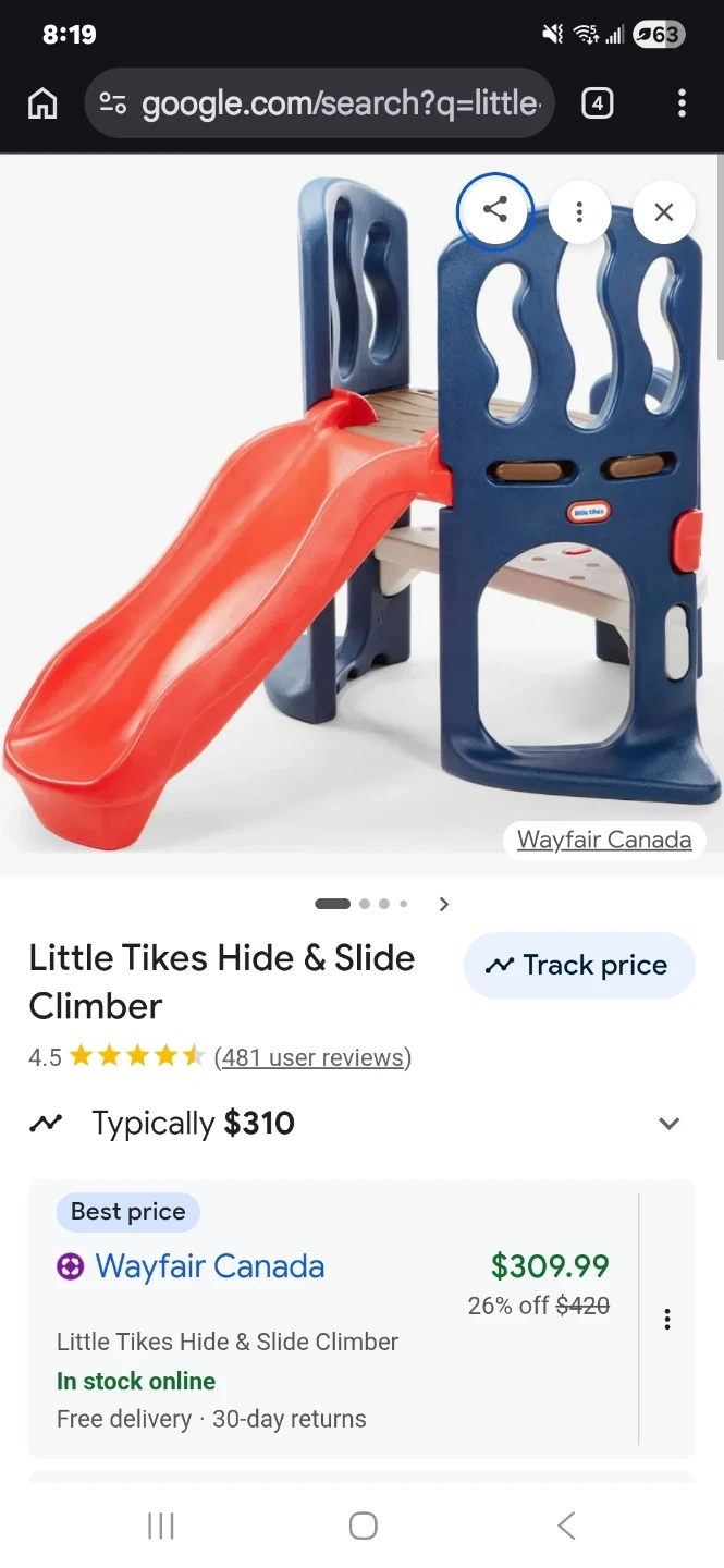 This Little Tikes Hide & Slide Climber is perfect for little ones to climb and slide. It's made of durable plastic and features a bright red slide. This climber is great for outdoor play! Mayfair is selling for over $300.