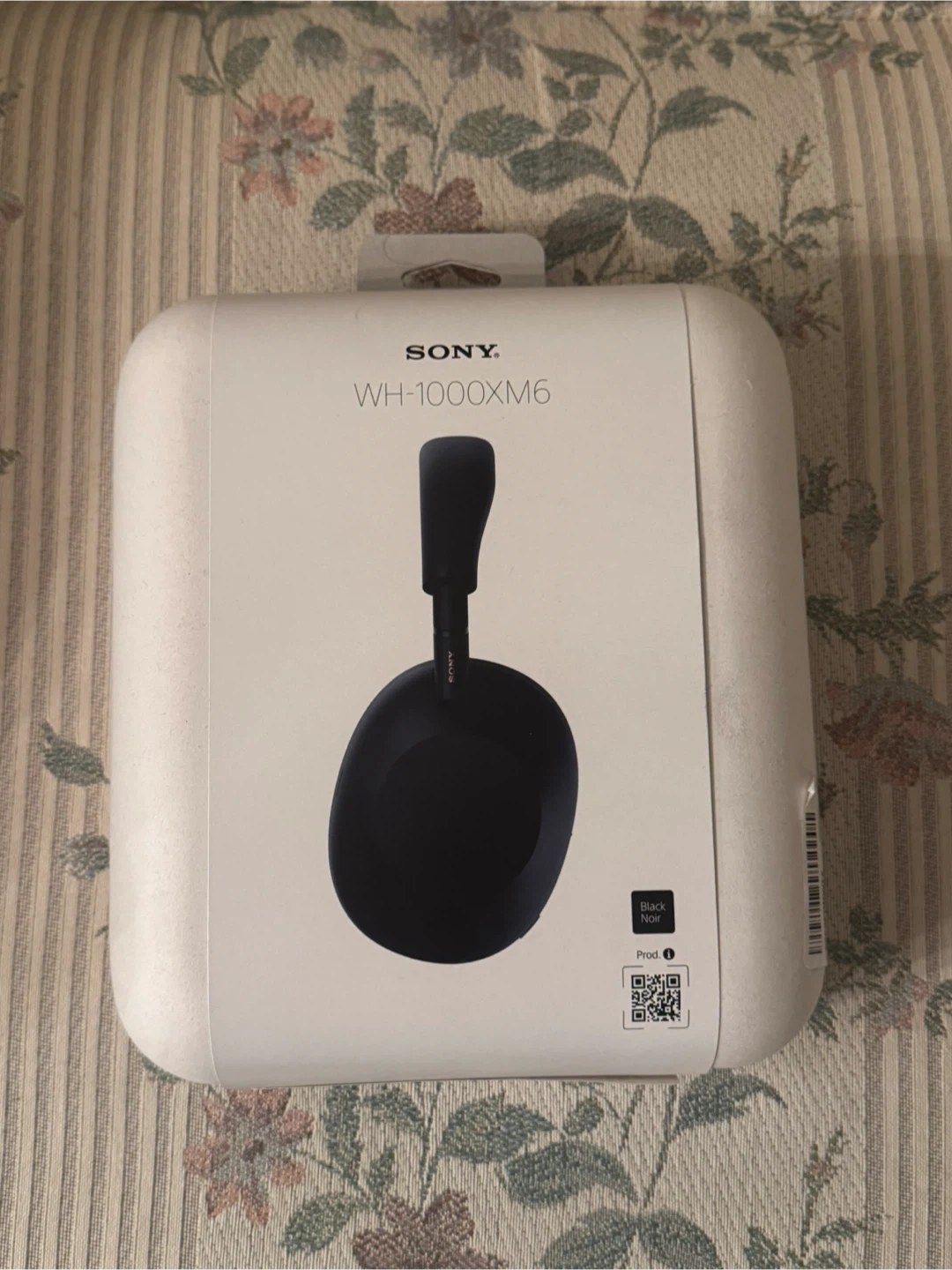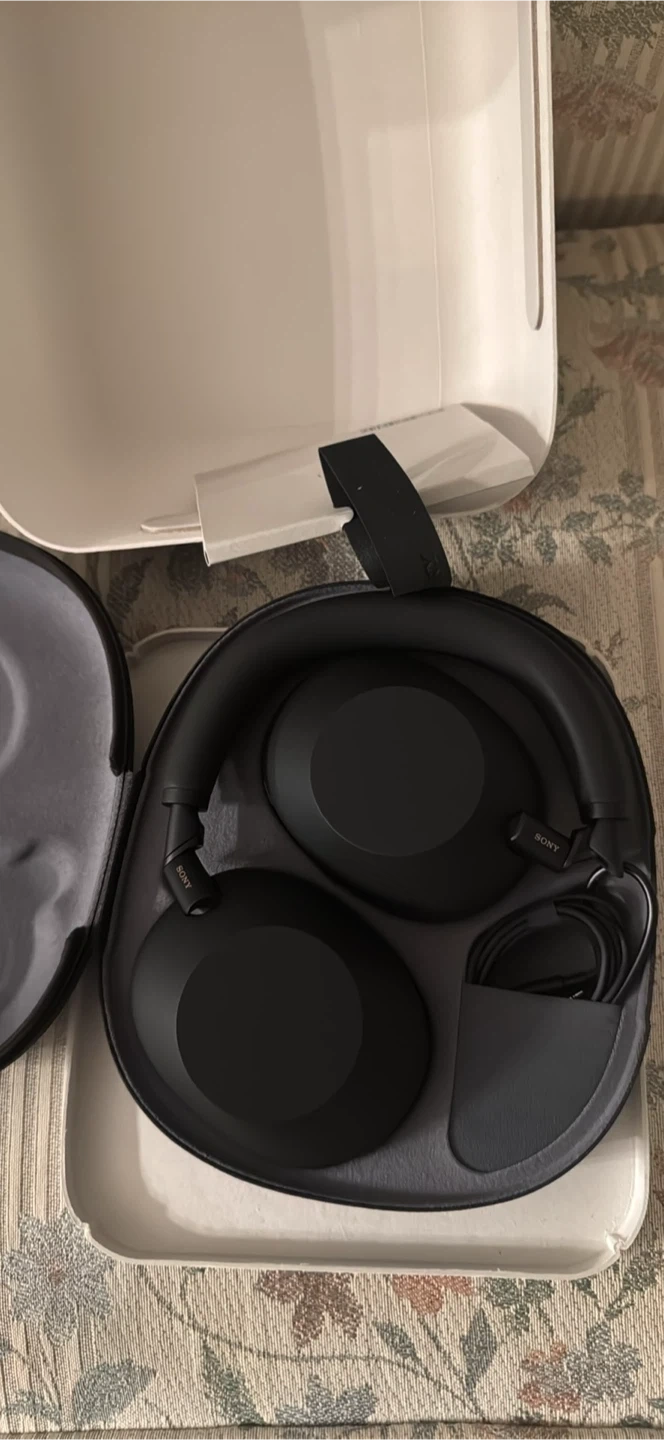 Sony WH-1000XM6 wireless noise-cancelling headphones in black. Includes original case and charging cable. Industry-leading noise cancellation for immersive listening.