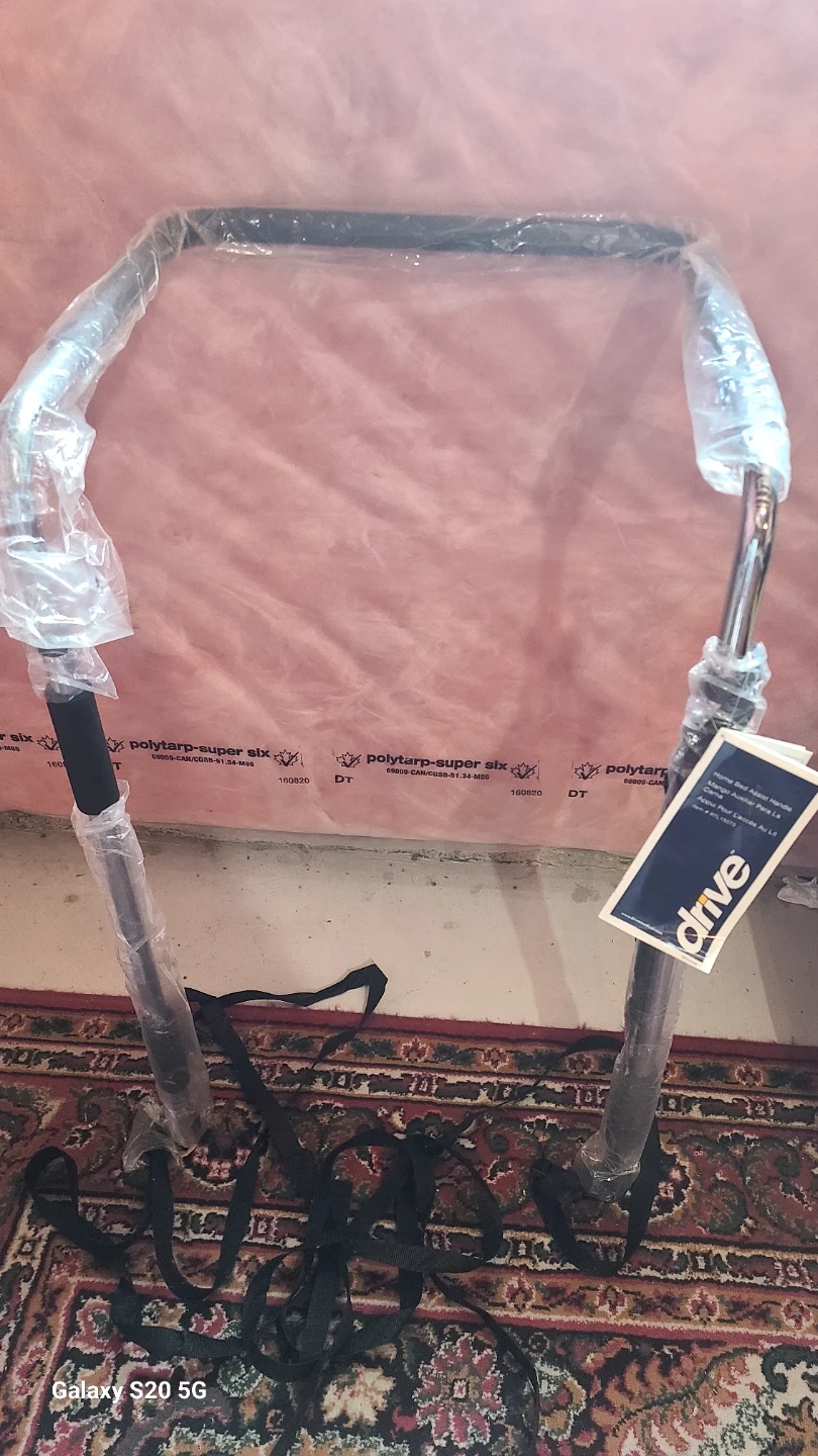 This Drive Medical Home Bed Assist Handle offers a sturdy support for getting in and out of bed. Its chrome-plated steel construction ensures durability. Straps are included for secure placement.