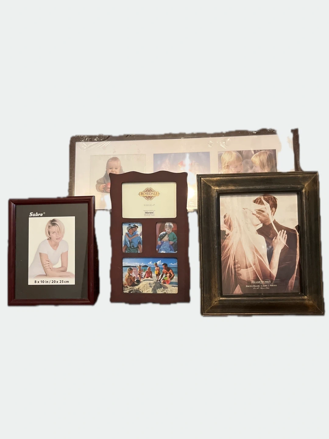 Includes a Sabre 8x10 photo frame and a Frameworks photo frame that holds one 8"x10" photo. Also includes a Rosedale multi-photo frame and another multi-photo frame. They're great for displaying your favourite memories! $3 Each