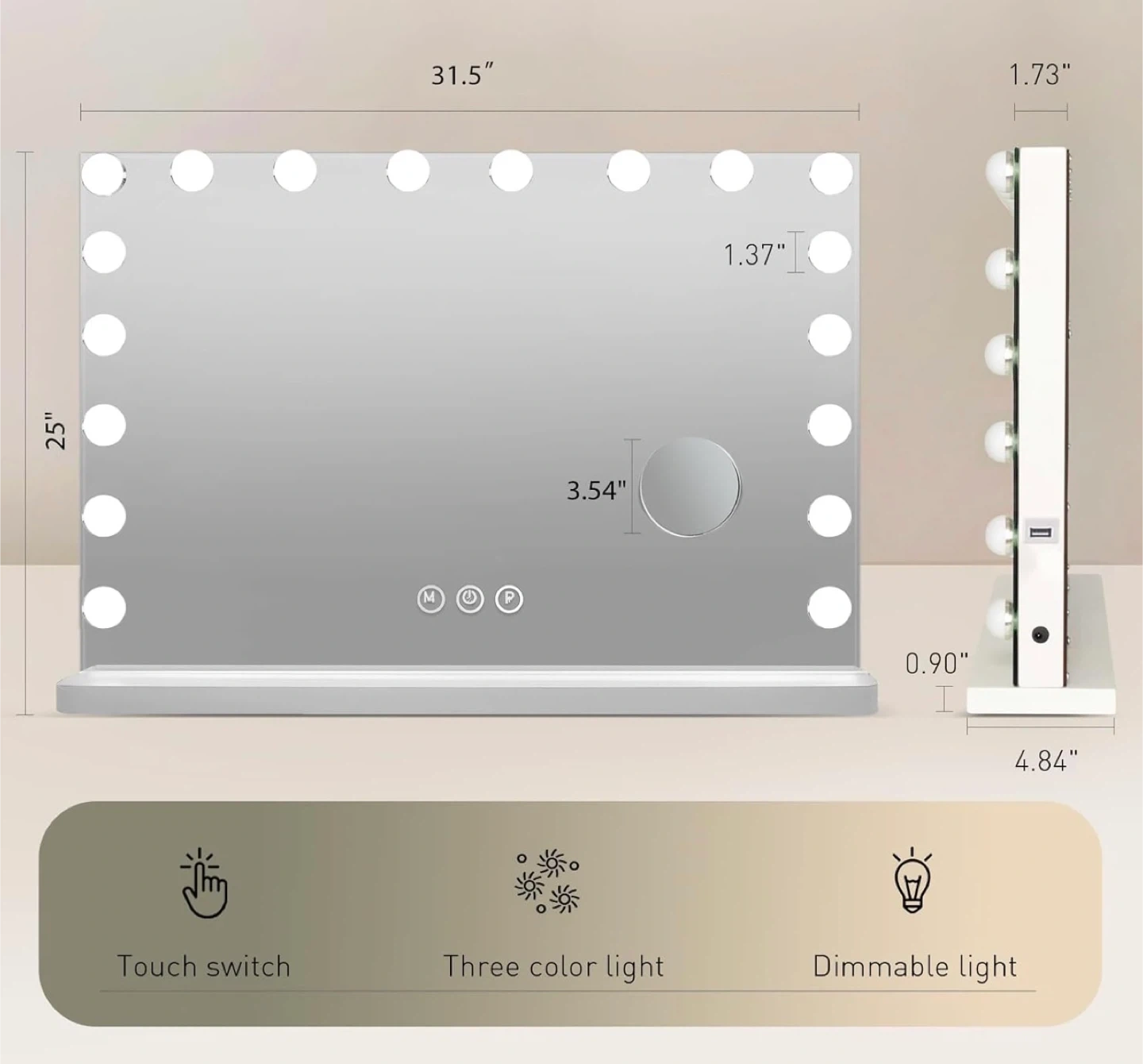 Hollywood Vanity Mirror with Lights and Magnifying Mirror