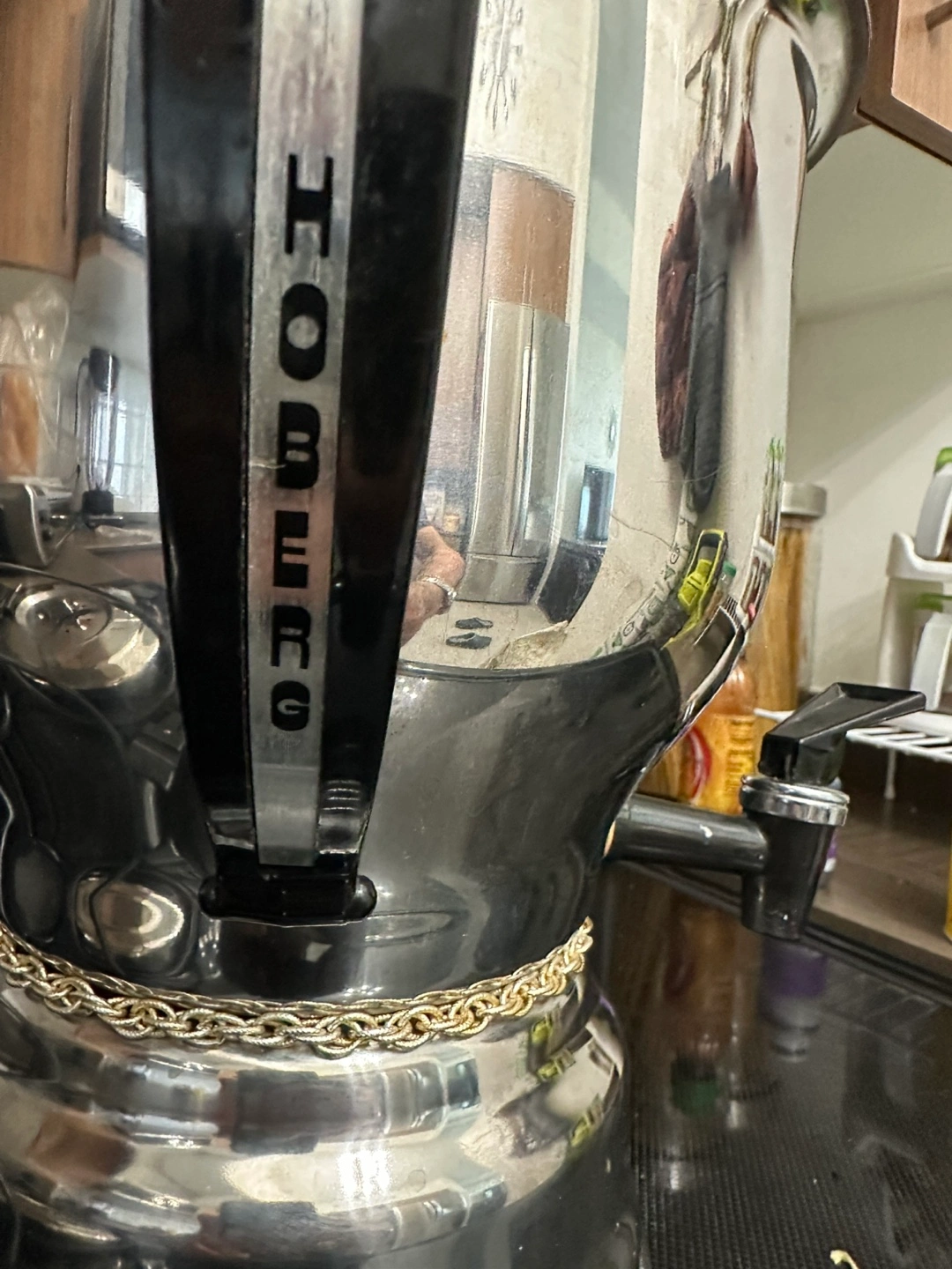 Selling a Hoberg stainless steel coffee urn. It's in used condition with some signs of wear, but still works great. Perfect for gatherings or events where you need to serve a lot of coffee!