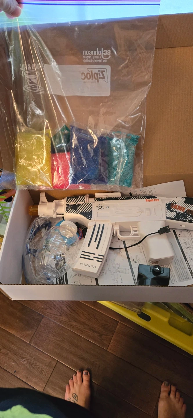 The Gel Blaster Surge Gelstormer is ready for some fast-paced, adrenaline-fueled adventure! It blasts up to 70 ft (20 meters). Included are 50,000 gel beads in assorted colours. Comes with the box and accessories