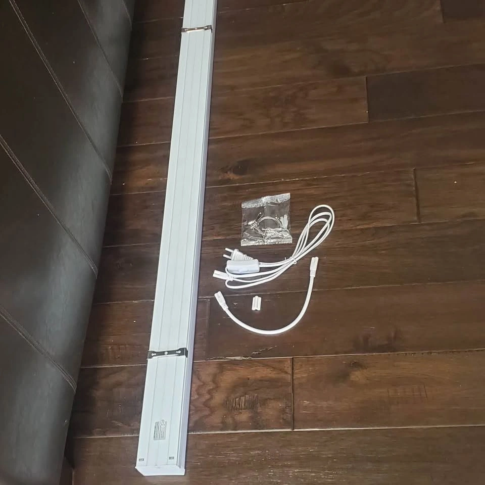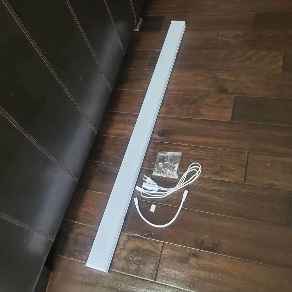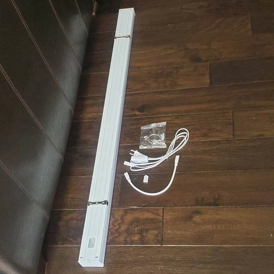 Illuminate your workspace with this New 4-foot LED commercial ceiling shop light, providing super bright and energy-efficient lighting. Perfect for garages, kitchen under counters, workshops, or basements. It comes complete with flush and suspension mounting hardware and a power cord with switch, 2 types of daisy chain connectors, ensuring easy installation. The light emits a clean, white light, enhancing visibility. 6 units available. Key Features: Length: 4 feet, Type: LED Shop Light, Condition: Brand New, Includes: Mounting hardware, power cords and connectors.