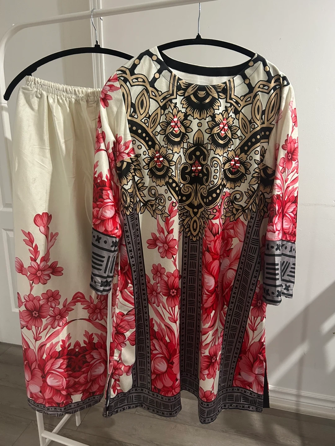 2 piece outfit in " Cotrai Velvet stuff " in best stitching & its best stuff for winter use with same loose style trouser