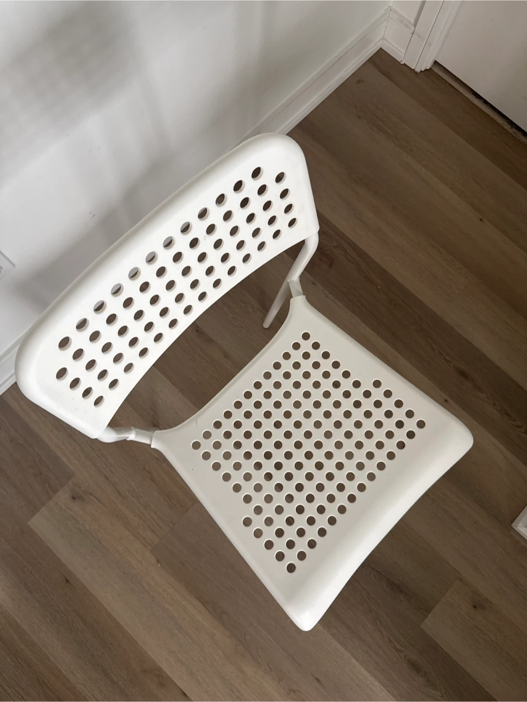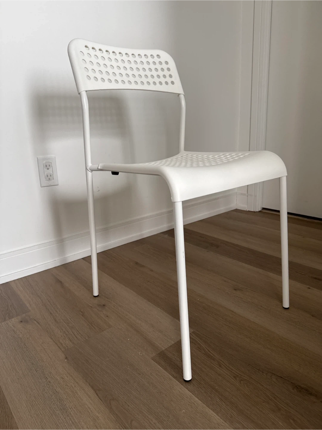 Selling two white IKEA VILMAR chairs in great condition. Clean, sturdy, and ready for a new home. Perfect for a dining room, kitchen, or office space.