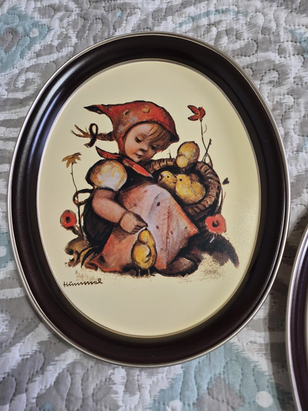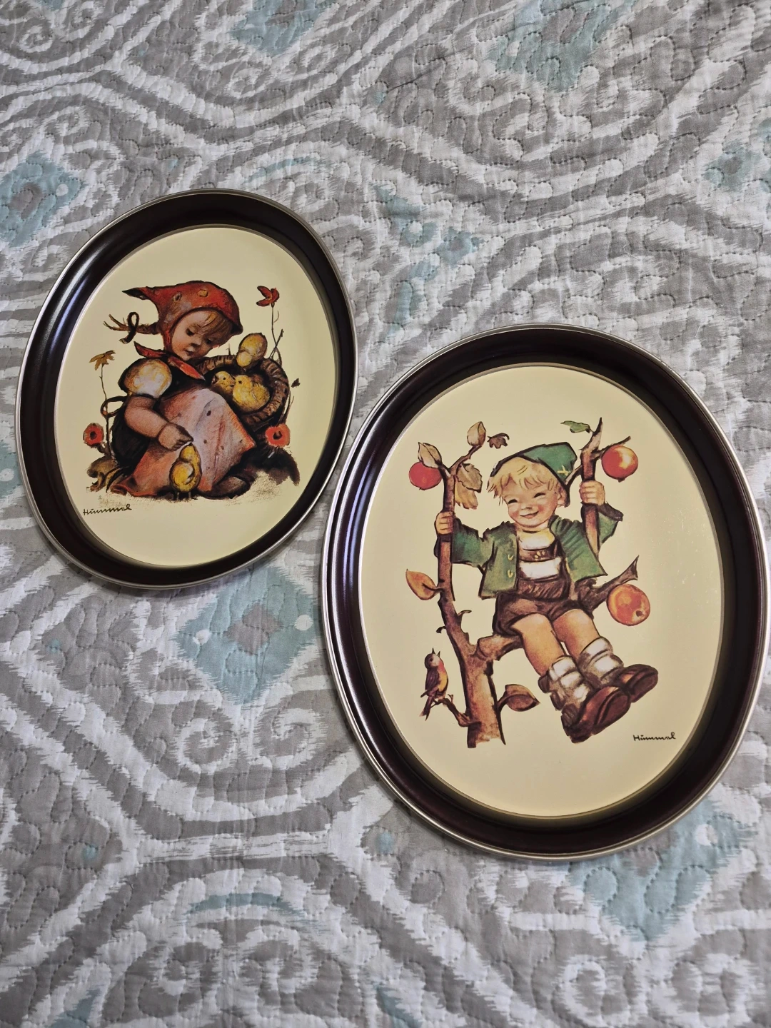 Pair of Vintage 1982 & 1983 Goebel Hummel "Chick Girl" & "Apple Tree Boy" Oval Metal Tin Trays by ARS in USA - each 14 1/2" x 11 1/2" Oval - Excellent Condition selling both together Please See all pictures