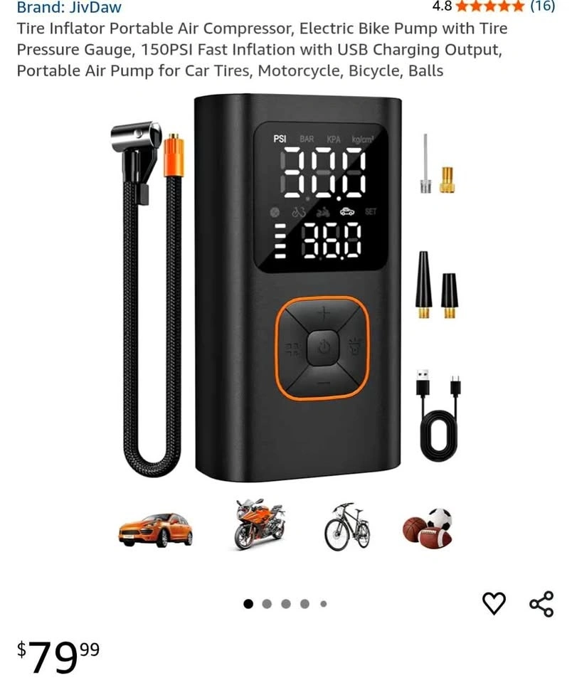 This is a brand new, portable air compressor. It's compact and easy to carry, making it perfect for various tasks. Feel free to message if you have any questions!