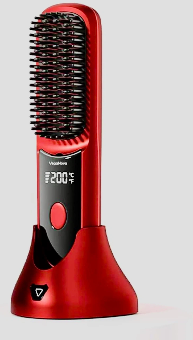 NEW - VegaNova Cordless Hair Straightening Brush (Red)