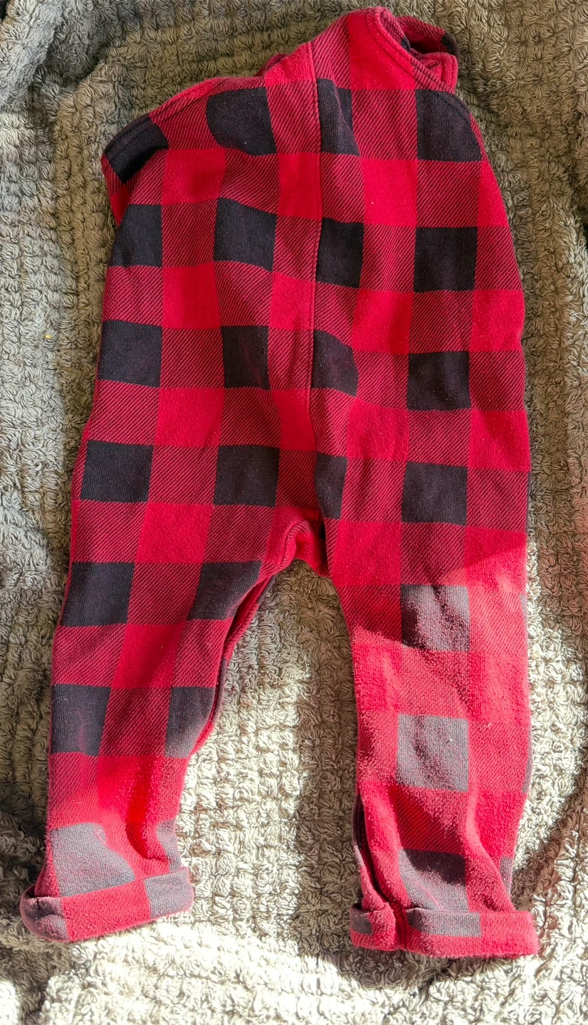 These adorable baby overalls feature a classic red and black plaid pattern. They're perfect for keeping your little one cozy and stylish! They have a cute little pocket on the front and button closures.