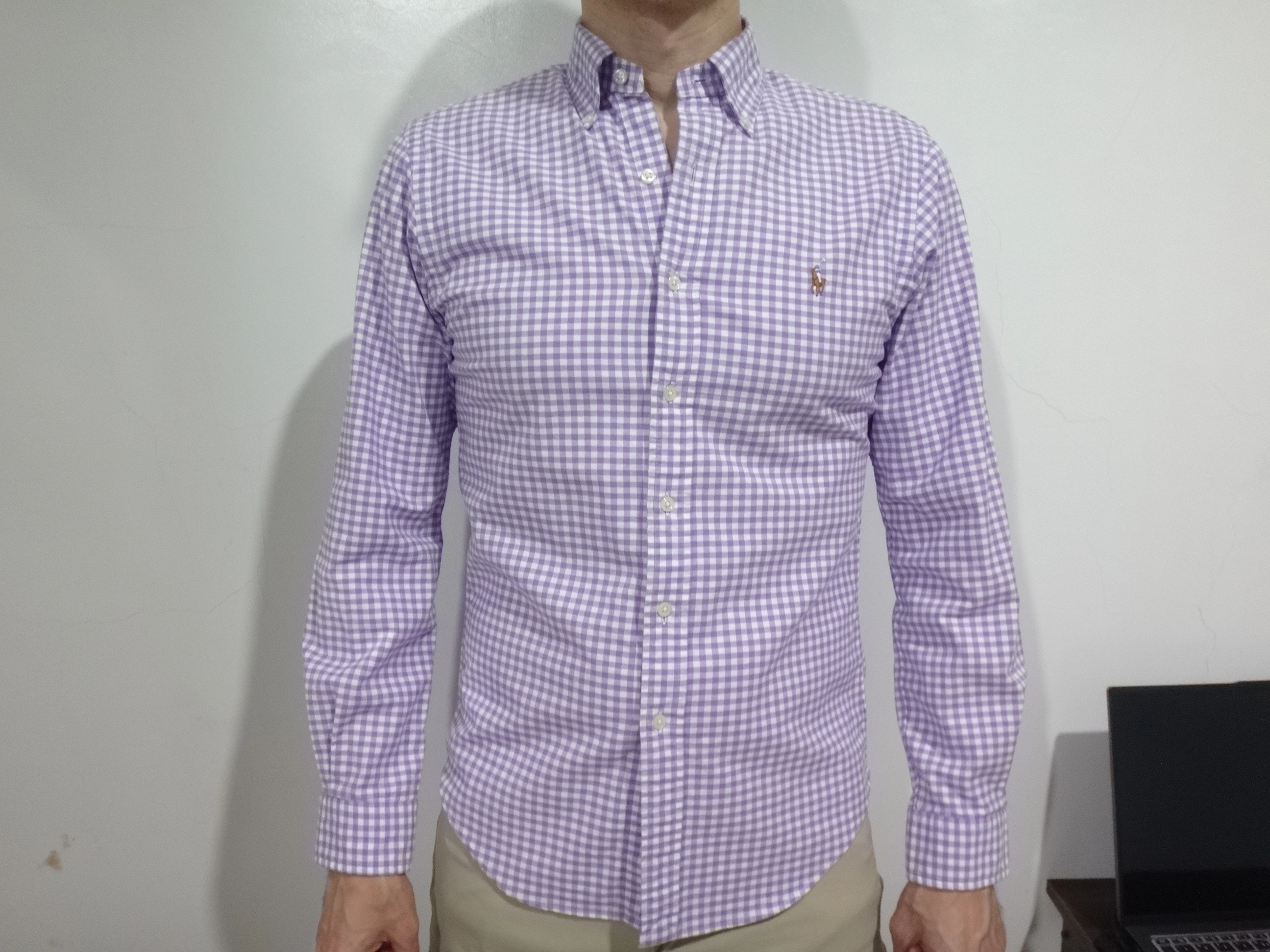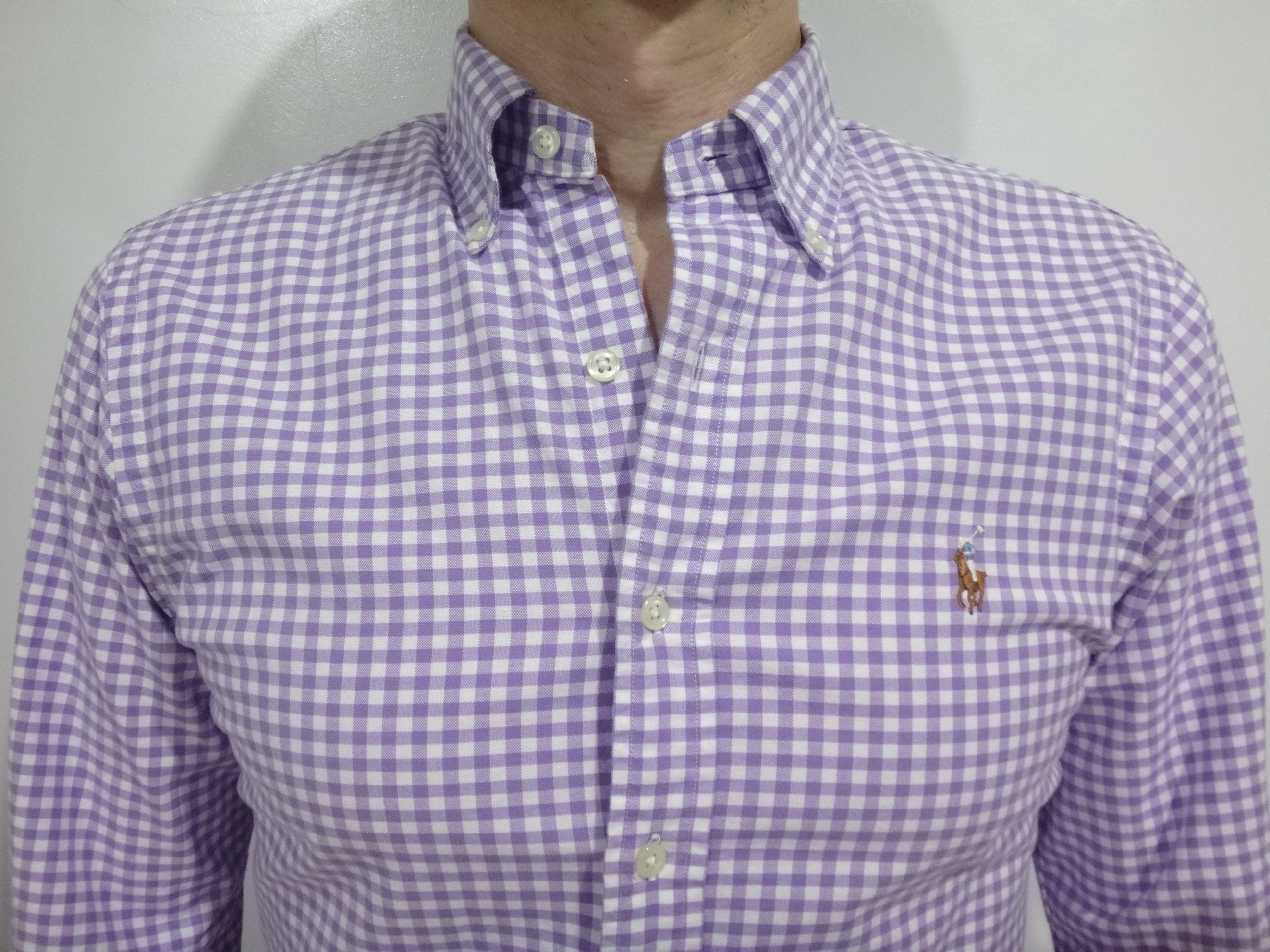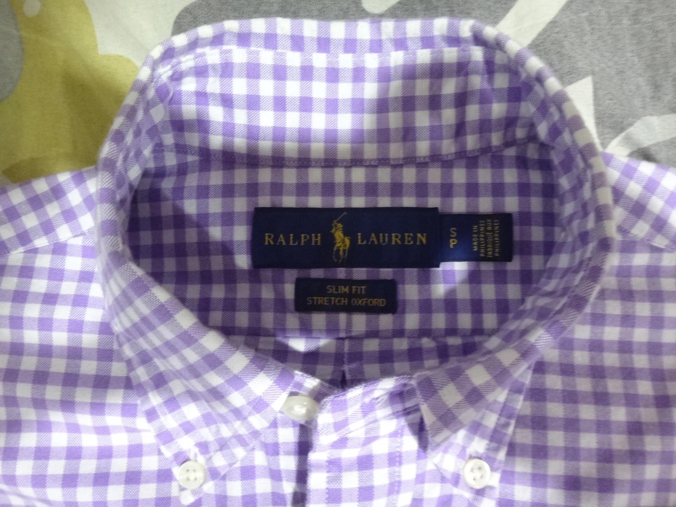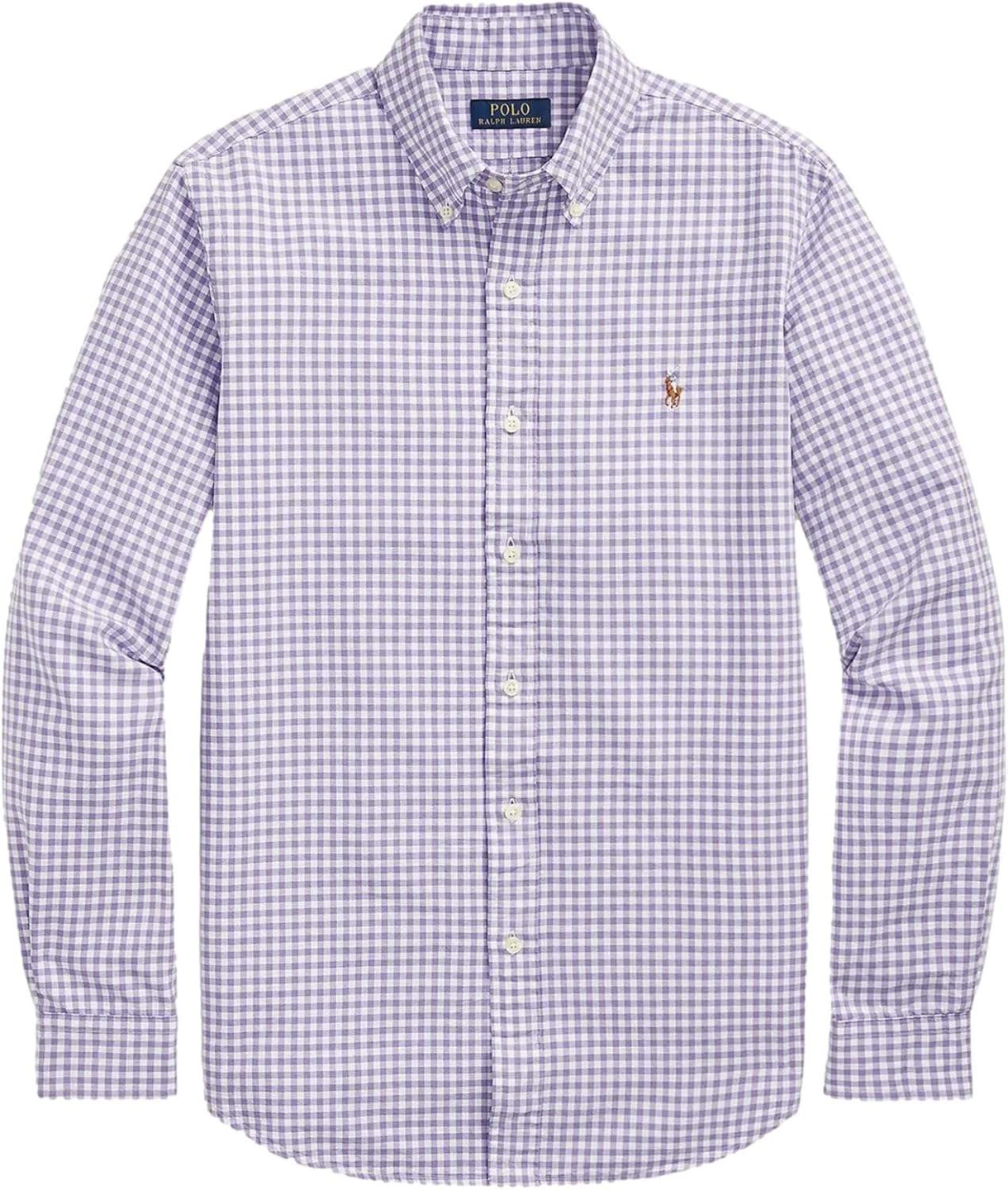 POLO π RALPH LAUREN Purple White Gingham Men's Small Slim Fit Stretch Oxford Shirt.