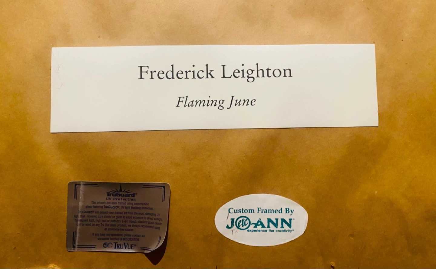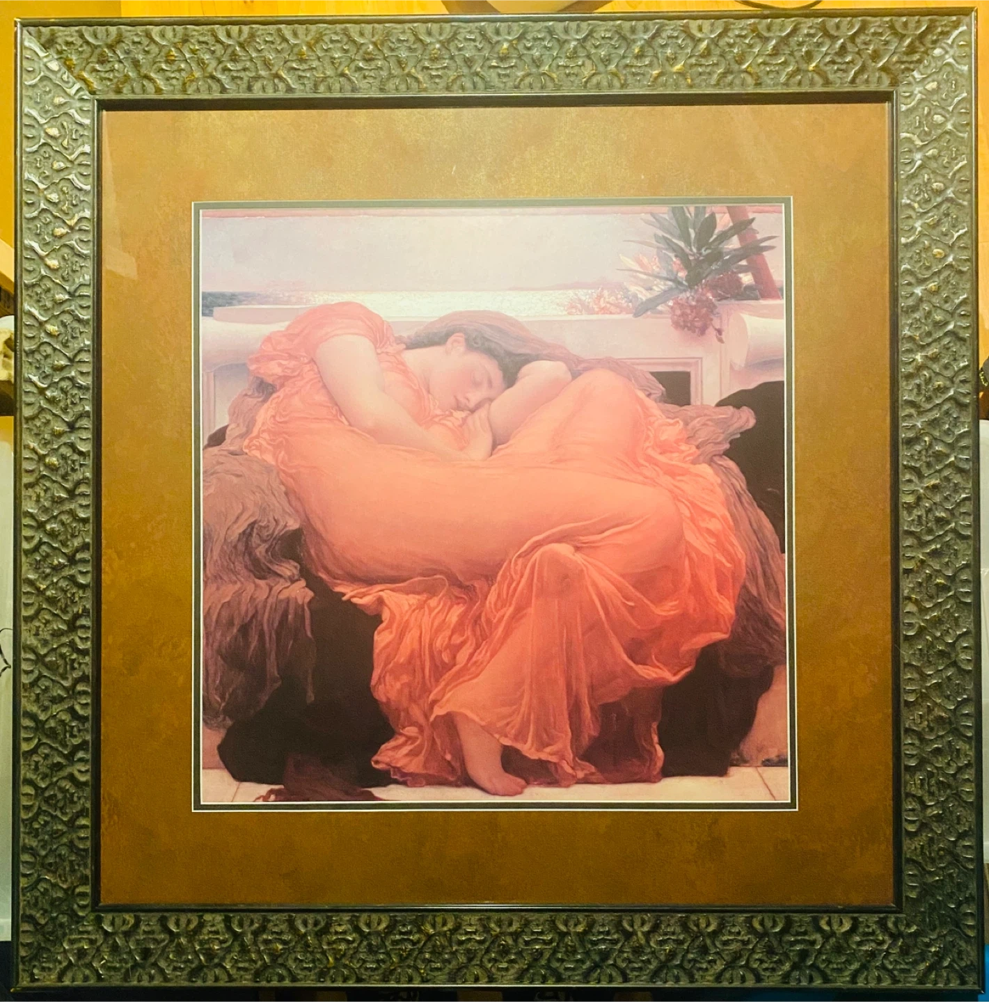 Selling a framed print of 'Flaming June' by Frederick Leighton. It's custom framed by Jo-Ann. A beautiful piece for any art lover!