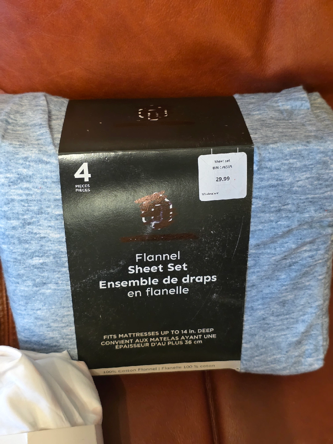 Flannel sheet set for a double bed. Includes: - Flat sheet (206 cm x 244 cm / 81 in x 96 in) - Fitted sheet (137 cm x 191 cm / 54 in x 75 in) - 2 standard pillowcases (51 cm x 76 cm / 20 in x 30 in) Fits mattresses up to 36 cm / 14 in deep Material is 100% cotton and machine washable