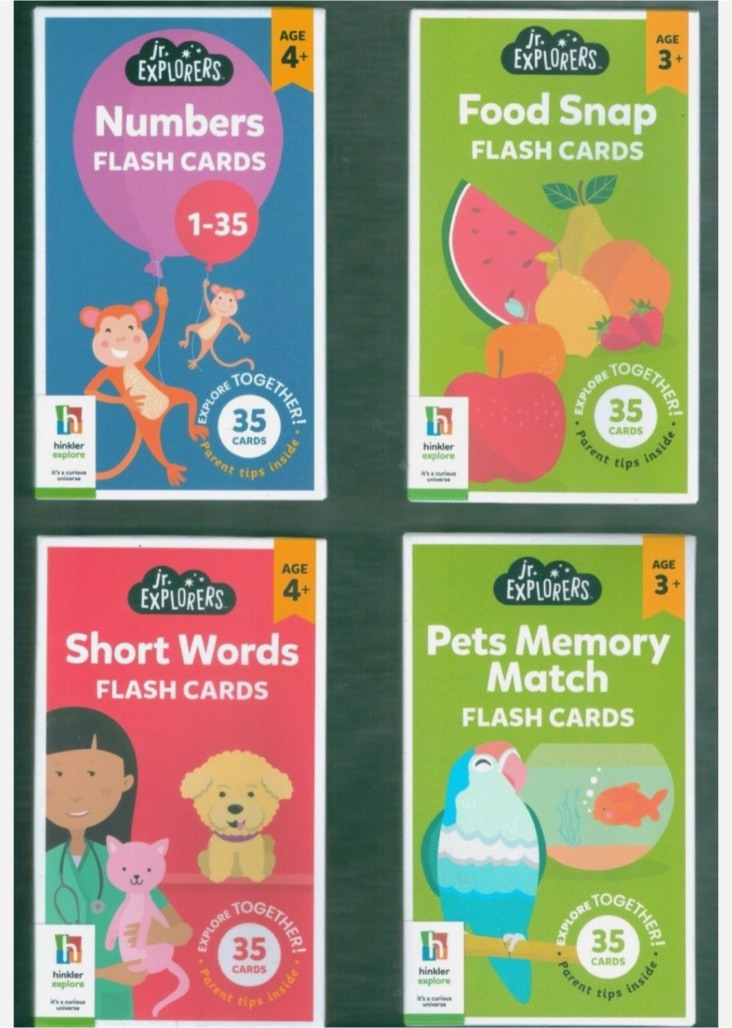 I'm offering a bundle of Hinkler Jr. Explorers flash cards! This set includes four different sets: Pets Memory Match, Food Snap, Numbers 1-35, and Short Words. Each set is designed to help your child with early learning skills in a fun and engaging way. Perfect for kids aged 3+ and 4+! Meet up & cash only pls Meet up is in Nobleton Cards are new