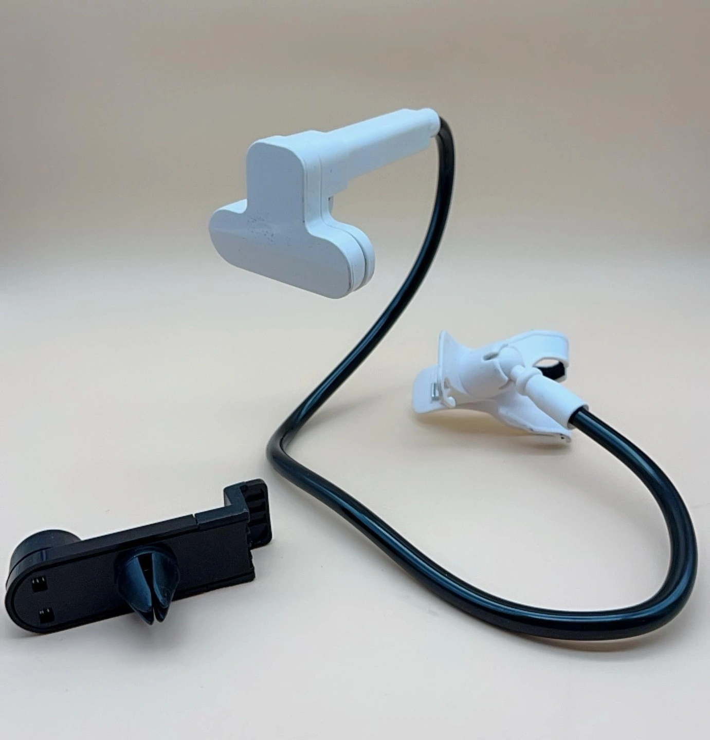 54Flexible white desk phone holder with bendy arm, clip mount, and universal phone cradle & Air Vent Car Phone Mount—versatile gadget for hands-free calls or video while driving or working! 🎒📱2 for $5