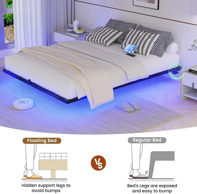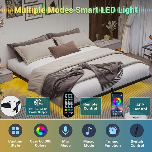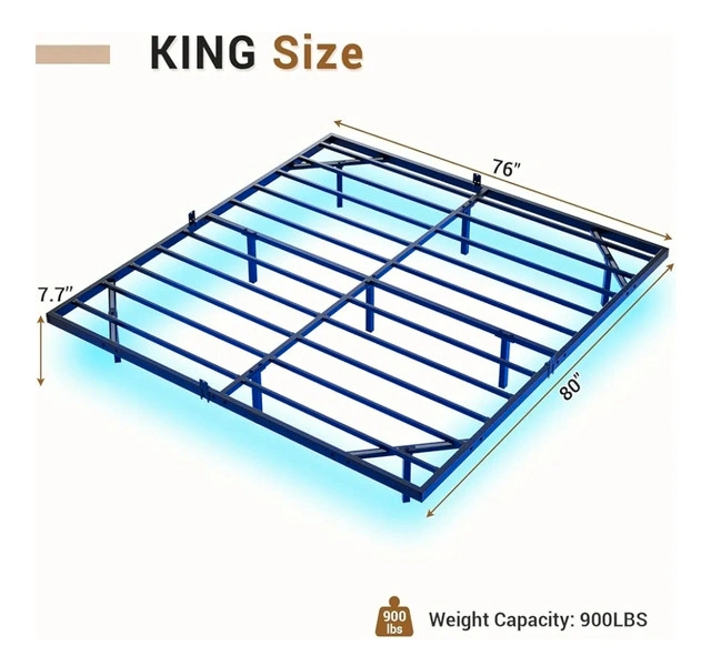 Brand new bed frame. It comes unassembled in original sealed never-opened box with all manufacturer parts and hardware for easy assembly. * Only the bed frame for sale. Mattress not included and sold separately. Pickup from south London. I can deliver in London for an extra fee. SANGMUCEN Floating King Bed Frame with LED Lights & USB Charging Station, Metal Platform Bed Frame King Size, No Box Spring Needed, Steel Slat Support, Anti-Noise Foam Stickers, HBF004H01 Product details: Brsnd: SANGMUCEN SizeKing Material: Alloy Steel Product Dimensions: 2.03L x 1.93W x 0.2H Meters Style: Modern Special feature: No Box Spring Needed, LED Lighting, USB Port, Floating, Charging Station Colour: Black Item Weight : 42 Pounds Ground To Item Distance: 7.7 Inches No Box Spring Needed, LED Lighting, USB Port, Floating, Charging Station