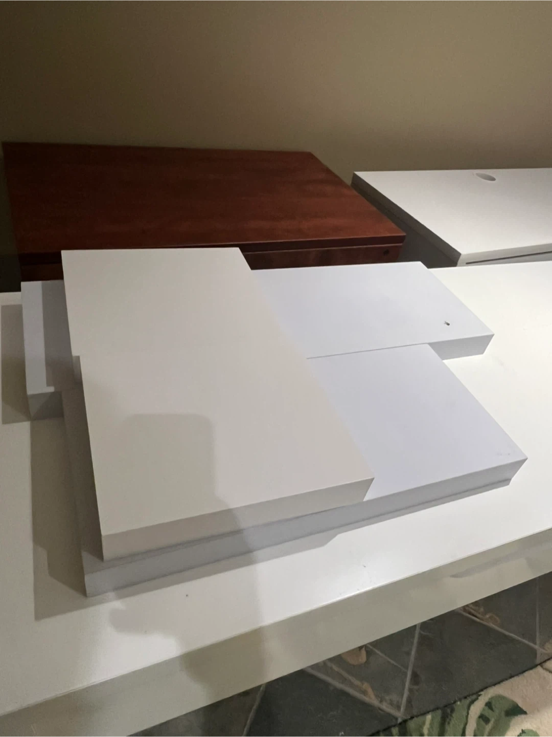 10Selling 4 white floating shelves. It's in great condition and ready for a new home! Perfect for creating a workspace.