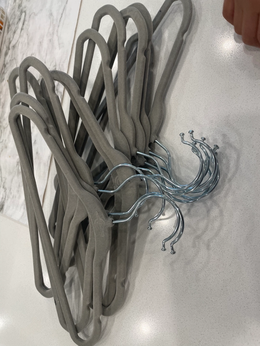 20Selling a set of flocked hangers in grey. They're in great condition and ready to help organize your closet!
