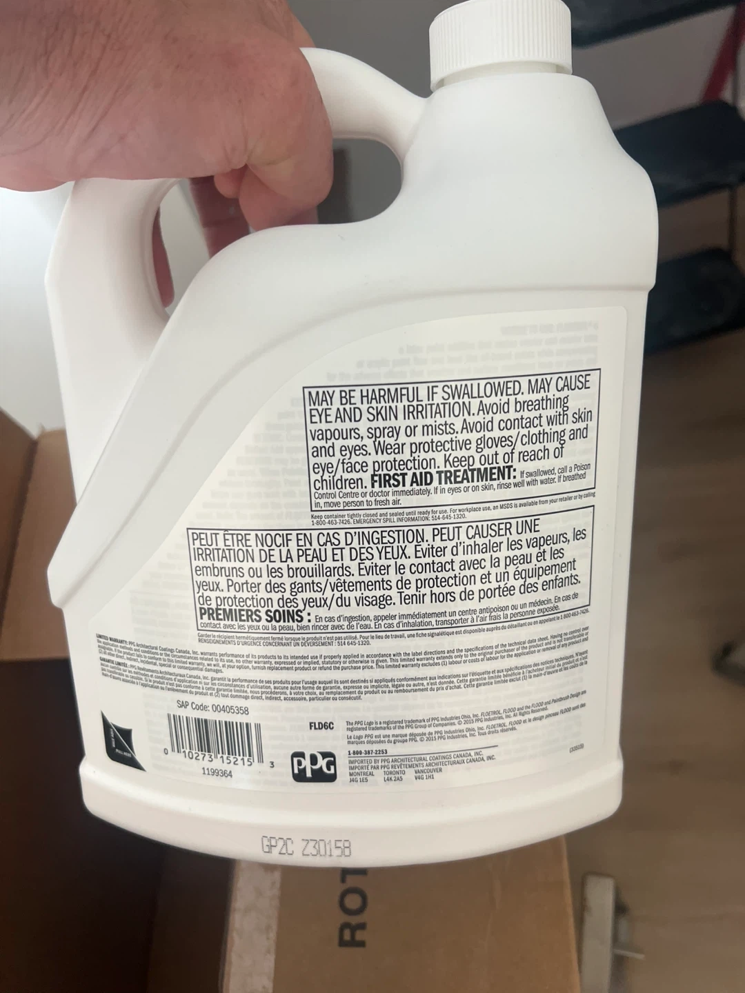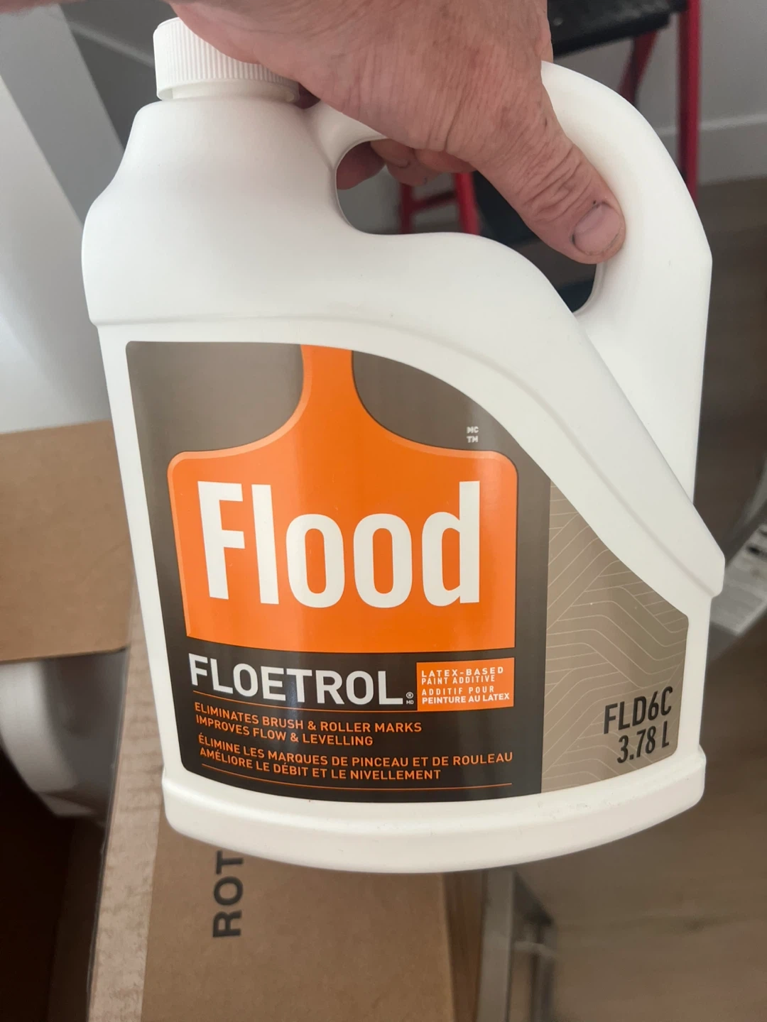 Selling a container of Flood Floetrol, a latex-based paint additive. It eliminates brush and roller marks and improves flow and leveling. Each container is 3.78L. We have 3 boxes with 4 in each box! $100 bucks for the lot !