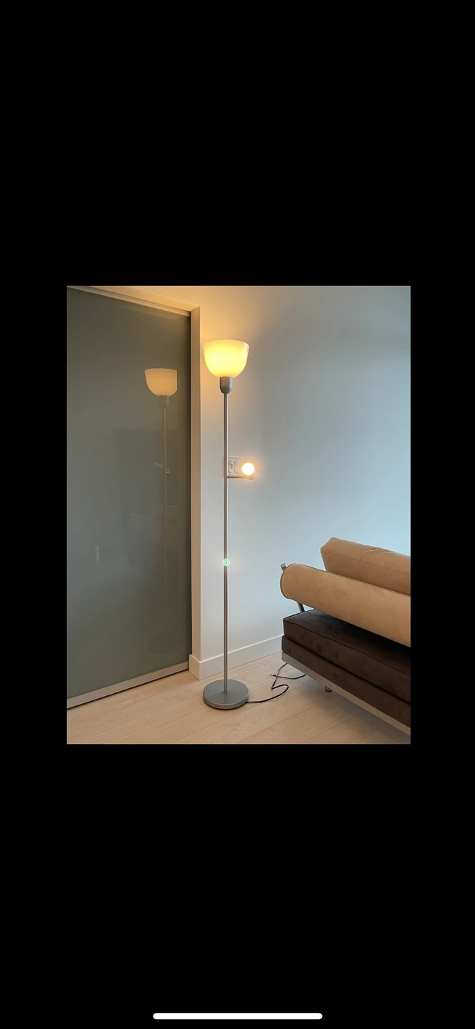 129Tall silver floor lamp with two light bulbs from IKEA.