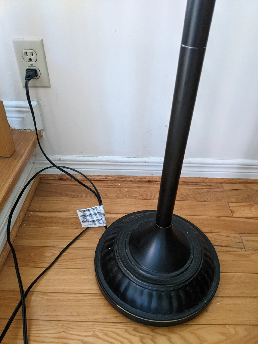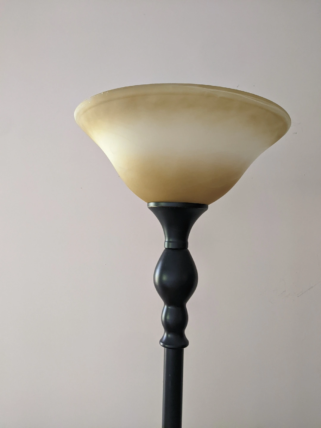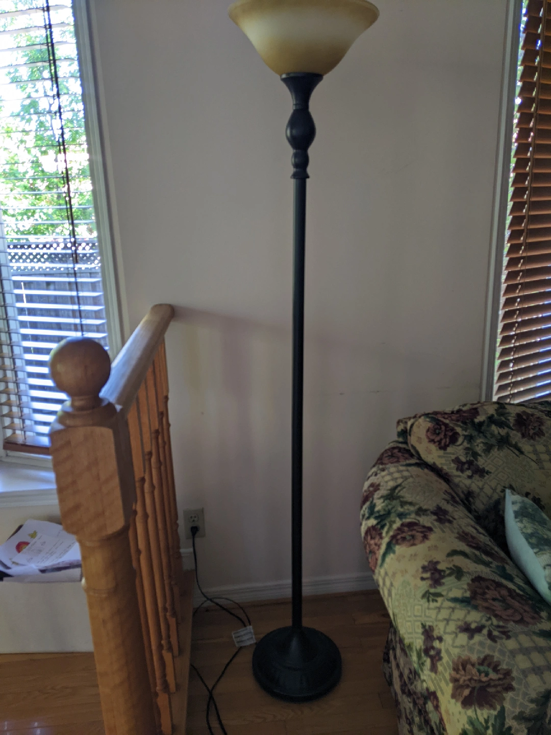 Floor lamp with a beige shade. It's in good condition and ready to brighten up your space! Perfect for adding a touch of warmth to any room in your home