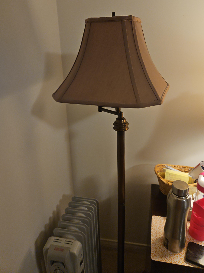 Glass dining table and floor lamp
