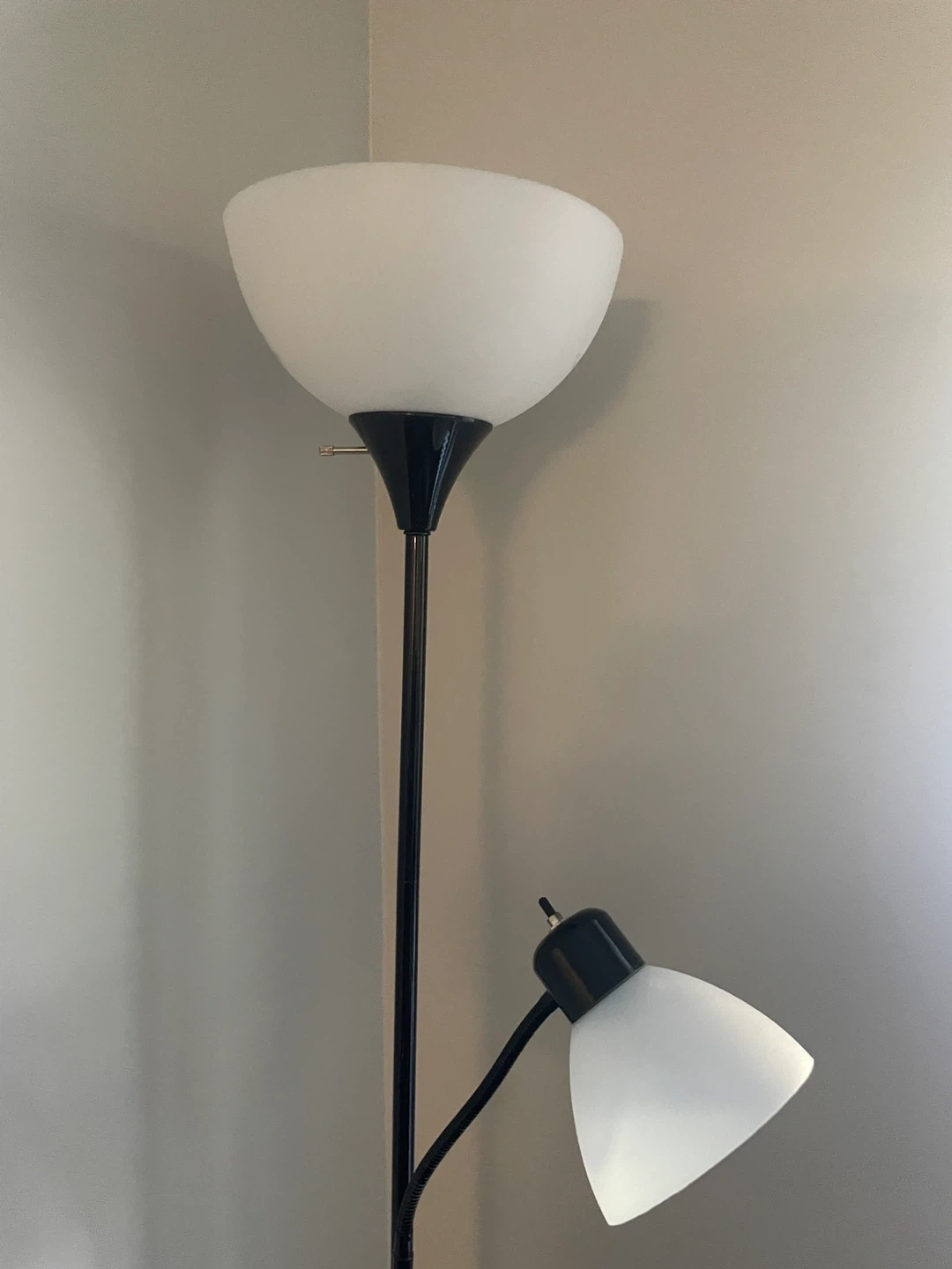 62Here's a floor lamp with an adjustable reading light! It's in great shape and provides a nice ambient light for any room.