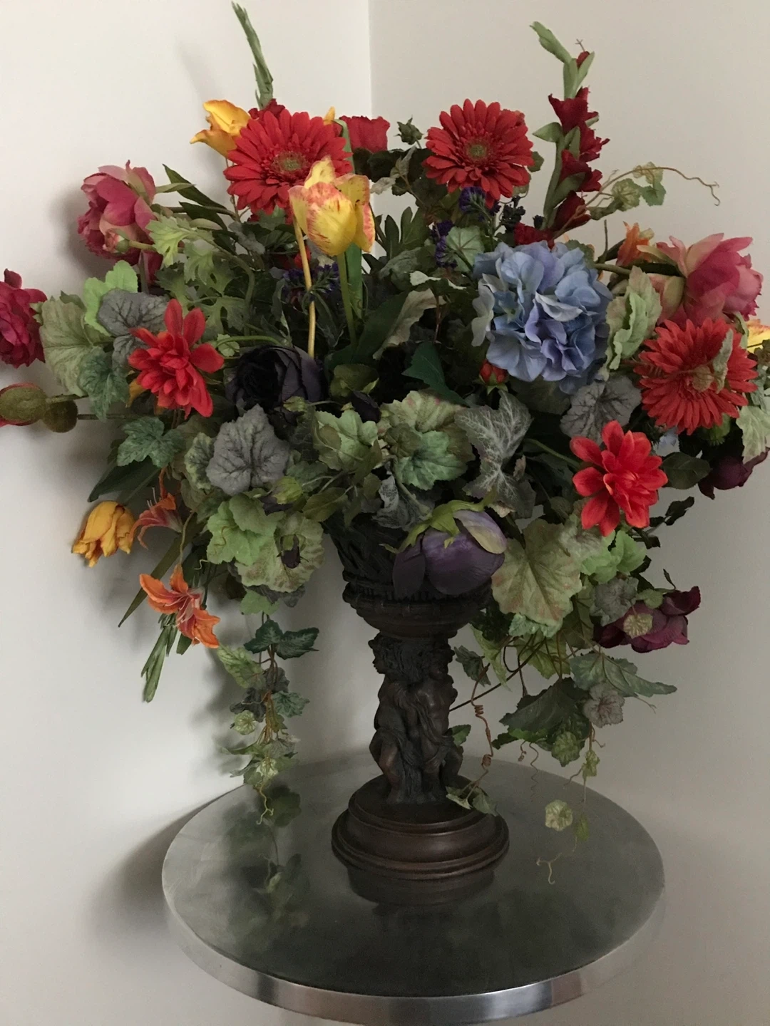 5This is a beautiful LARGE and very colorful floral arrangement in an urn-style vase. It would be a lovely addition to any room!