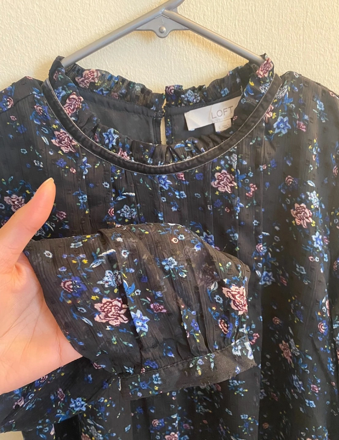 Pretty blue floral blouse from loft Canada in small. Worn only once to work.