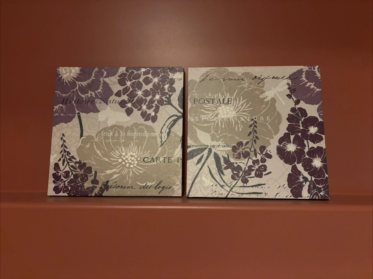 Selling a set of two canvas wall art pieces. They feature a lovely floral design with text in French. These would add a touch of elegance to any room! Meet-up in Royal Oak NW Calgary.