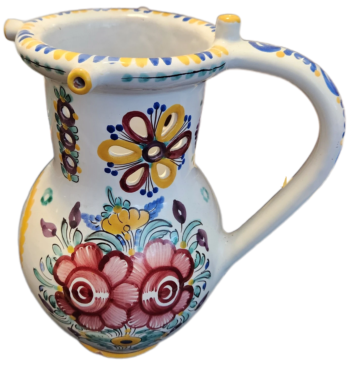 91Lovely floral ceramic pitcher for free ! It's in great condition and would look beautiful in any home. The pitcher features a colourful floral design on a white background. Perfect for serving drinks or as a decorative piece ! Height - 10"