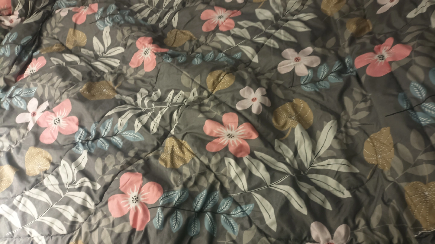 1000+Selling a gently used comforter with a lovely floral pattern in shades of grey and pink. It's in great condition and would add a cozy touch to any bedroom!