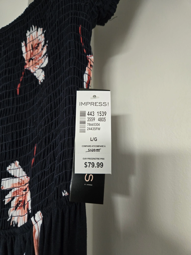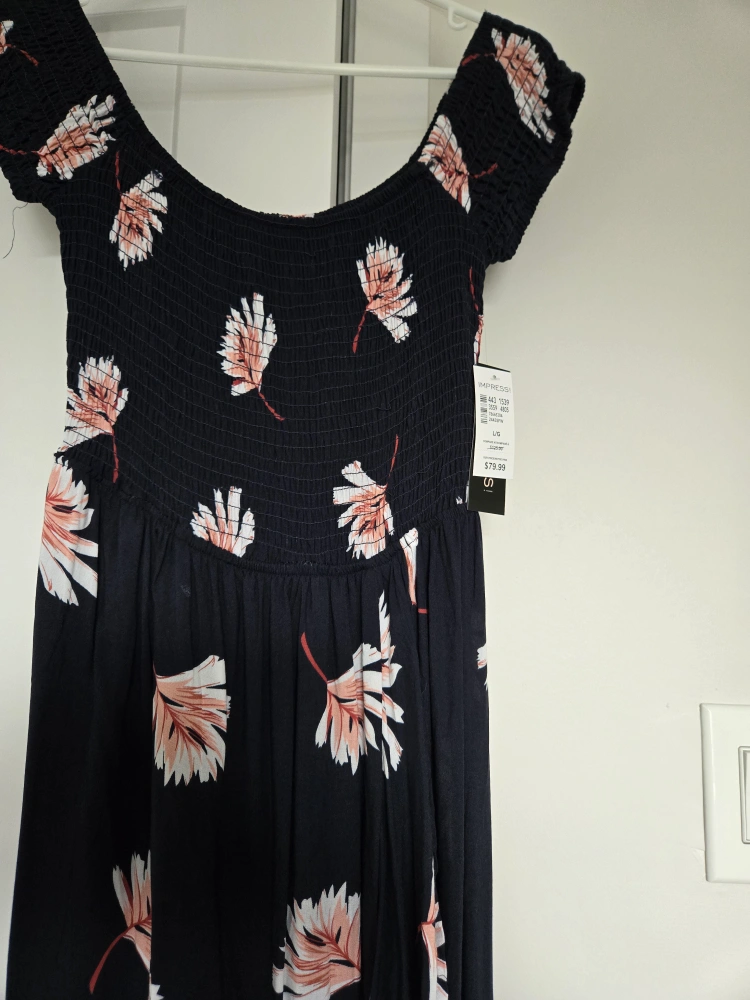 10This is cute dress with a floral pattern. It's a size L/G. The tag says it originally retails for $79.99!