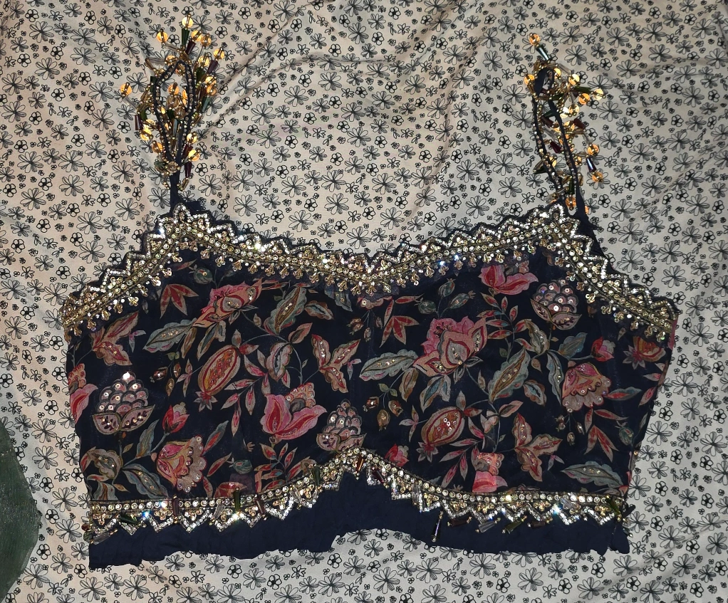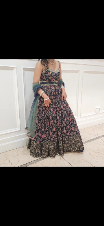Beautiful floral lehenga choli with a matching dupatta. The lehenga and choli feature intricate floral patterns and decorative embellishments. Perfect for a special occasion! worn only once for a few hours, bought it for over $500. letting it go at a good price