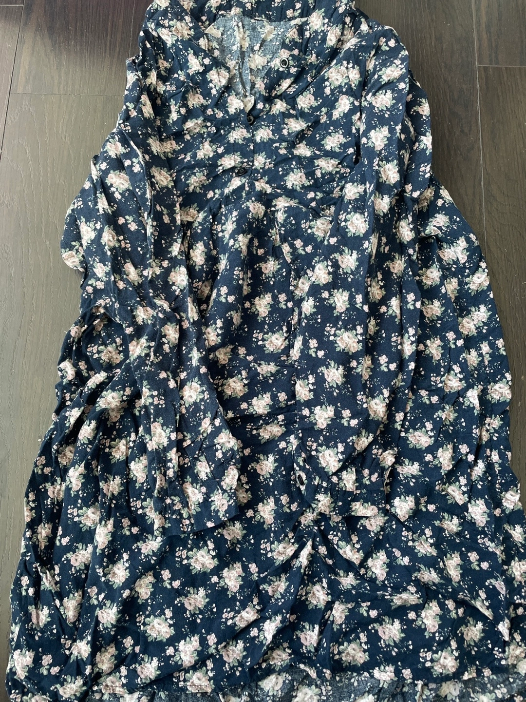 607Long sleeve blouse with floral print. Button up front.