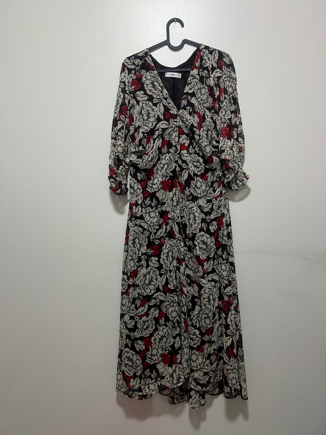 Long sleeve midi dress with floral pattern. V-neck and side zipper (never wore)