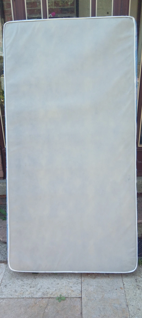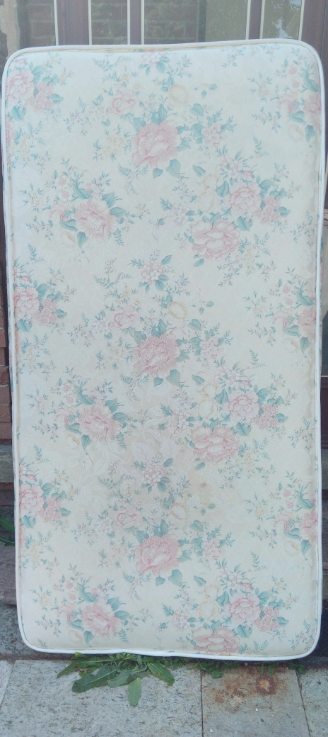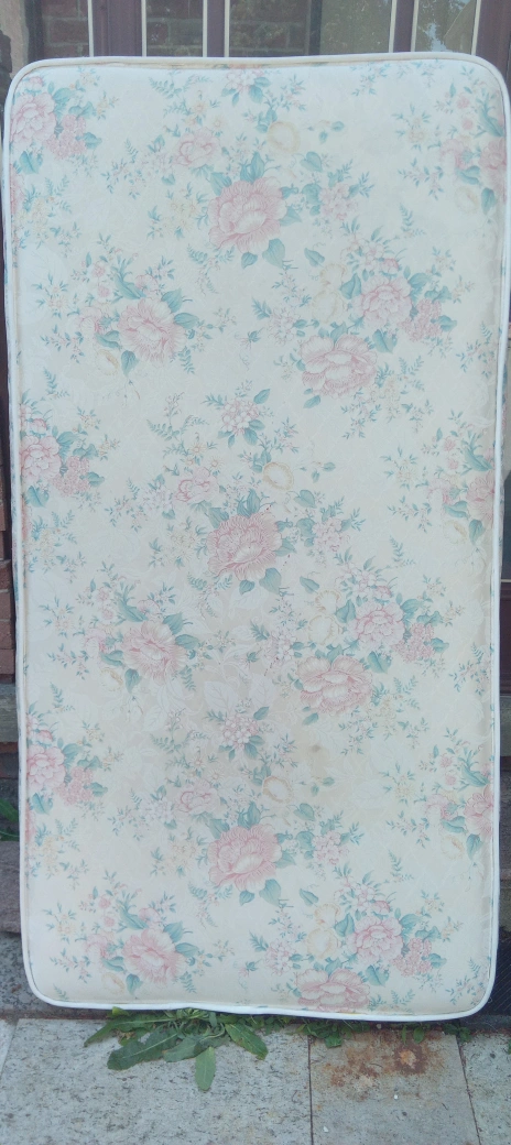 51Selling a crib mattress with a floral pattern. It appears to be in good condition and would be perfect for a baby's crib